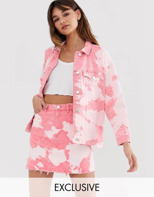 Wear yours with a graphic tee and leggings. Pink Co Ord Tie Dye Pleat Back Denim Jacket cropped 80s style denim tie dye jacket with drop shoulder sleeves pockets and a raw edge hem. 5 out of 5 stars.